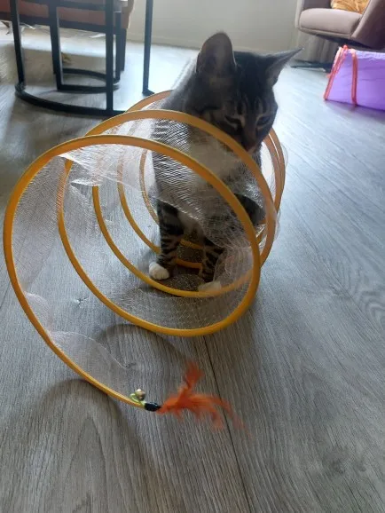 Compré este túnel para mis dos gatos, y ha sido la mejor inversión en juguetes para ellos. En cuanto al pedido, recibí muy buena atención, gracias por eso!
